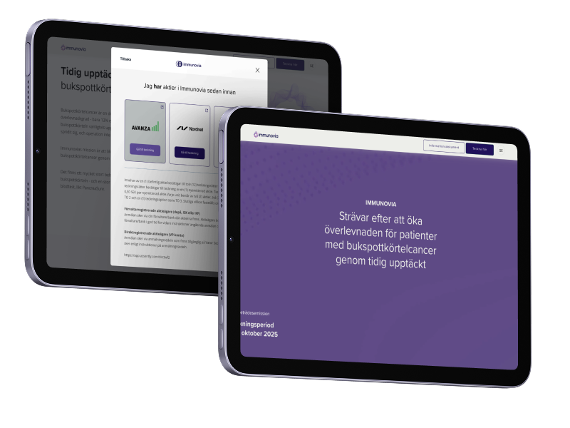 För Immunovia ansvarade vi för strategi, paketering och digitalt genomförande i samband med bolagets företrädesemission om cirka 100 MSEK. Emissionen tecknades till cirka 87,9 % med och utan stöd av teckningsrätter och resterande 12,1 % tilldelades garanter, vilket innebar att emissionen totalt tecknades till 100 %. Bolaget tillfördes därmed cirka 100 MSEK före emissionskostnader.