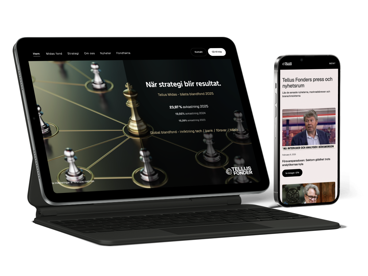 För Tellus Fonder utvecklade vi en helt ny hemsida med modern struktur och ett användarvänligt CMS som gör det enkelt för teamet att själva uppdatera innehåll, publicera nyheter och justera fondinformation utan tekniskt beroende.